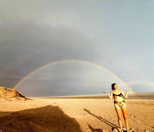 Auch in unserem schmucken Zelt schliefen wir super und ließen es uns nicht nehmen, am nächsten Morgen schon früh an den Strand aufzubrechen – diesmal mit der Gaucha. Da wir heut einen langen Tag auf der Piste vor uns hatten und die Temperaturen schon morgens in die Höhe schossen, blieb es bei einem kurzen Besuch am Strand – lange werden wir ja nicht auf ein Wiedersehen warten müssen. 500 Kilometer durch die Provinz „La Pampa“, vorbei an tausenden Rinderherden auf immergrünen und am Horizont nicht enden wollenden Weiden, standen auf dem Programm und das Thermometer zeigte 35 Grad an. Gute Musik, Mate-Tee und die Vorfreude auf die wartenden Abenteuer ließen die Zeit verfliegen. An der Grenze zur Provinz Rio Negro legten wir dann einen Stopp zum Salat- und Empanada-Lunch in einem typischen Ruta-Restaurant ein, bevor wir den bedeutungsvollen Fluss Rio Colorado feierlich überquerten: Er ist das Tor nach Patagonien! Und die Region machte ihrem Namen auch gleich alle Ehre. War die Aussicht auf ein kühlendes Bad am Strand unseres heutigen Campingplatzes in Las Grutas die Hoffnung des ganzen Tages, wurde diese durch plötzlich aufkommende Wolken zumindest vage in Frage gestellt. Doch von ein paar Wolken ließen wir uns natürlich nicht aufhalten. Nach dem Check-In (wir waren diesmal nicht alleine, eine Familie war bereits da) packten wir direkt unsere Strandstühle und ab gings es … Hätten wir mal die Gezeiten vorher gecheckt, denn: Es herrschte Ebbe! Der Strand war zwar super, aber das Wasser mehrere hundert Meter weit draußen. Gleichzeitig zogen die Wolken immer bedrohlicher auf. Das Resultat: Nach wenigen Minuten saßen wir pitschnass in unseren Strandstühlen und froren im peitschenden Regen. Doch das Schauspiel war nur von kurzer Dauer, so dass wir danach unseren Rucksack packten und ab durchs feuchte Meer-Watt vorbei und über unzählige Krebse, Krabbentiere und sonstigem Gewimmel marschierten. Erst als wir am Wasser angekommen waren, wurde uns klar, dass das Gewitter noch nicht vorbei war, denn es legte eine zweite Runde ein. Jetzt hieß es schleunigst runter vom Strand. Barfuß rennt es sich über steinigen Meeresboden übrigens nur semi-angenehm. Letztlich wurden wir zwar ein zweites Mal komplett nass, blieben vom Blitzschlag aber verschont und wurden stattdessen von einem beeindruckenden Regenbogen belohnt. Diesmal duschten wir heiß und in vollen Zügen, bevor wir ins Dorf aufbrachen und uns einen leckeren Fisch in einem Strandrestaurant gönnten. Danach nächtigten wir ein zweites Mal in der Gaucha – diesmal mit gechillter Vorbereitung im Trockenen. Am nächsten Tag warteten weitere 300 Kilometer gen Süden bis nach Puerto Madryn, wo wir unsere Basis für einige Tage aufschlagen werden. Zunächst galt es jedoch, den nächsten Morgen am Strand zu verbringen – dieses Mal mit blauem Himmel, Sonne und Wasser bis vor die Haustüre. So lässt es sich Frühstücken und der Gaucha gefällt die frische Meeresbrise ebenfalls. Den Ruf, dass der Badeort Las Grutas angeblich das wärmste Wasser Argentiniens hat, konnten wir beim morgendlichen Bad nicht ganz nachvollziehen: es war arschkalt, aber eine angenehme Erfrischung und Stärkung vor dem anstehenden Reisetag nach Puerto Madryn. Nach drei Tagen Camping freuten wir uns auf unsere gemietete Hütte auf der Halbinsel Valdes, einem Naturreservat vor der Toren Puerto Madryns, auf der Guanacos (Lamas), Pinguine, Seelöwen und -elefanten und Wale auf uns warteten. Vamonos!